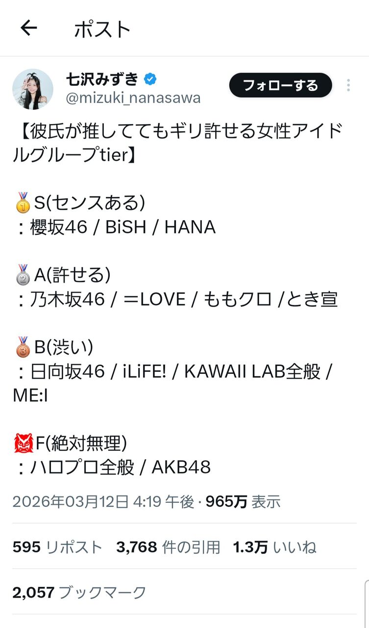 この記事を読んで、思わず笑ってしまいました!彼氏が推してるアイドルグループの評価をTierで分けるなんて、まさに現代の推しカルチャーを反映していますね。私の推しも入っていて、嬉しいけれど、どの位置に君臨しているのかドキドキしました。皆さんの意見も聞きたい!