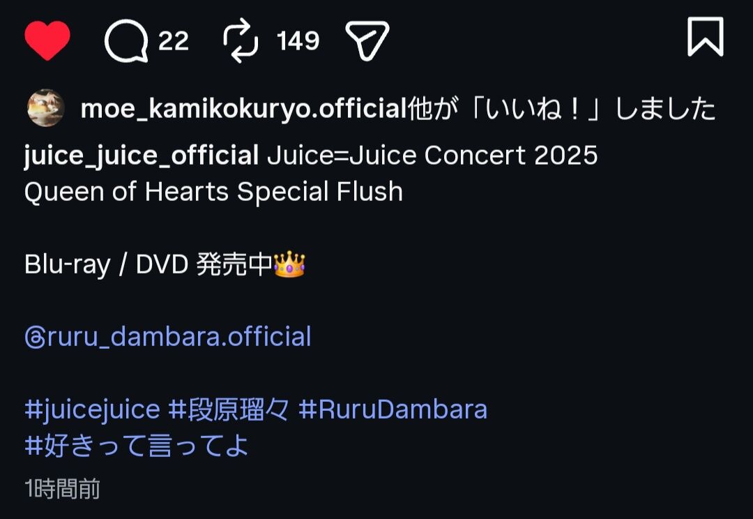 上國料萌衣ちゃんがJuice=Juiceの段原瑠々ちゃんのパフォーマンス動画にいいねをしたというニュースに、ファンとしてとても嬉しく感じました。元アンジュルムリーダーとしての彼女のセンスや感性が、瑠々ちゃんのパフォーマンスに引かれた証拠でしょう。