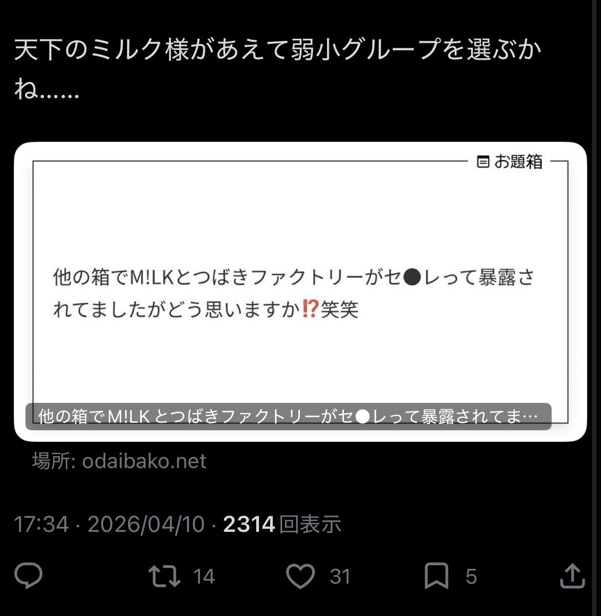 この記事を読んで非常に驚きました。M!LKとつばきファクトリーのメンバーがそんな関係にあるとは信じがたいですが、もし本当ならばファンとしては少し心配です。しかし、プライベートな関係にまで踏み込むのは避けたいところです。