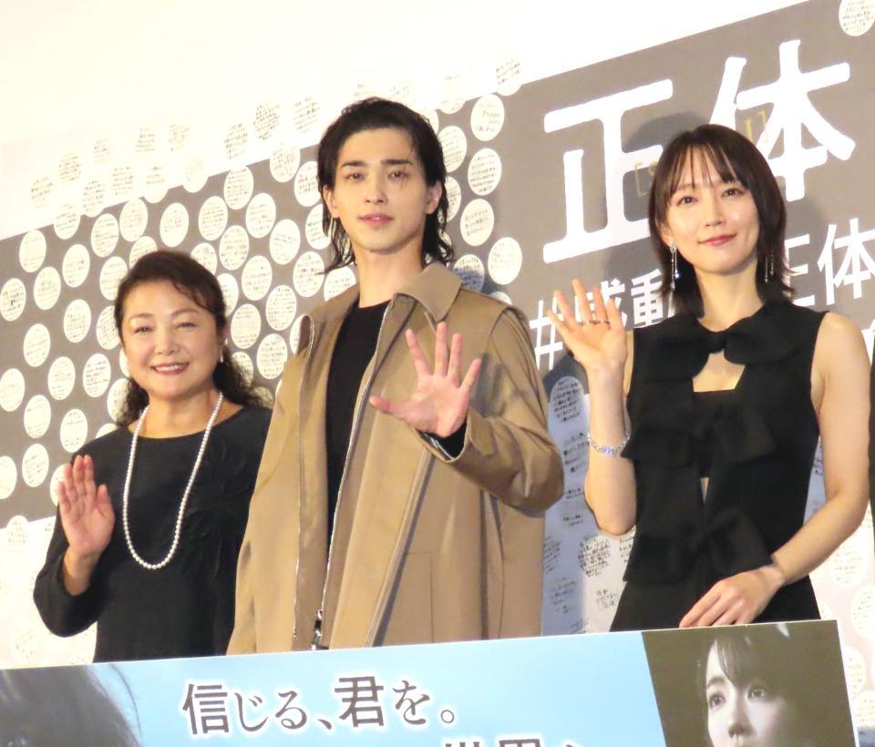 舞台あいさつに出席した(左から)原日出子、横浜流星、吉岡里帆